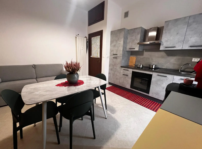 La cucina è dotata di tutto l'occorrente per la preparazione dei pasti, ed un tavolo per 4 persone, all'occorrenza allungabile a 6 posti. Il piano cottura è ad induzione ed è disponibile un frigorifero.